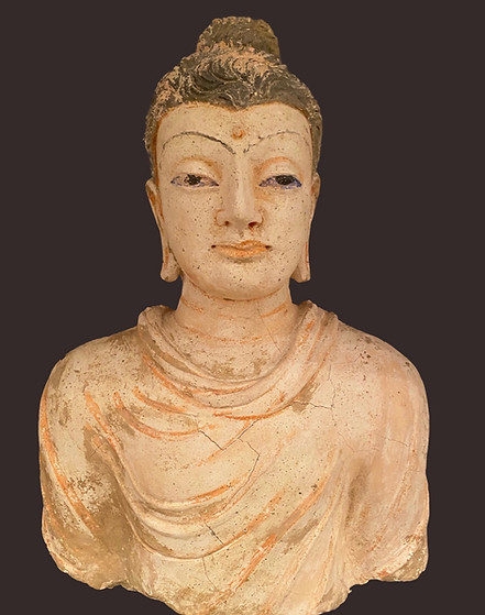 A beautiful modelled Hariti, the Gandharan Goddess of Fertility and Childbirth. Hariti was originally an Iranic-Zoroastrian ogress who used to devour children, but after the arrival of Buddhism in Gandhara, she was transformed (“converted”) to a Buddhist figure of protection and parenting.